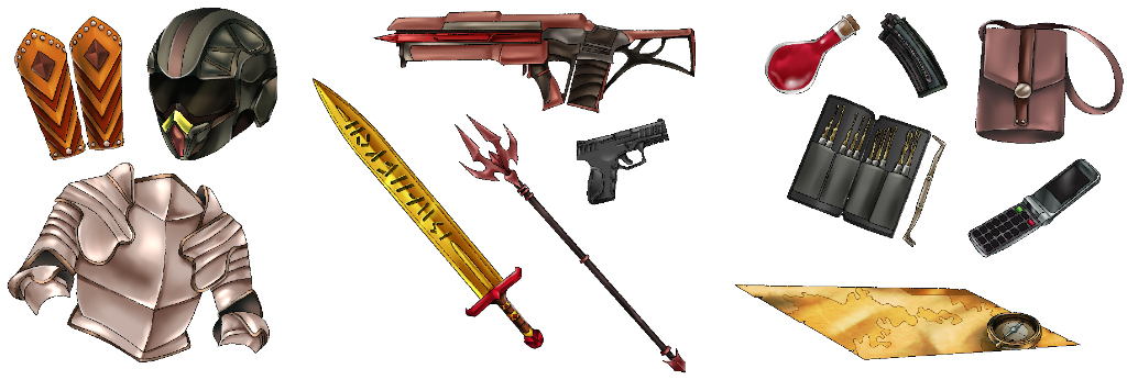 | History | Supernatural, Technique, Technology | Simple, Medieval, Military, Armor, Clothes, Shield, Equipment, Consumables, Ability Item | Simple, Medieval, Military, Armor, Clothes, Shield, Equipment, Ability Item |